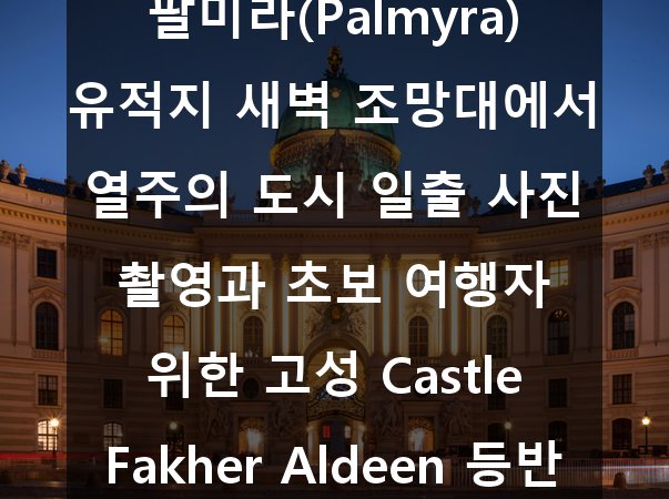 ๊ณ ๋ ๋ฌธ๋ช ์ ์ ๋น์ ์์ฐ์ ํฉํํ ์กฐํ, ๊ทธ๋ฆฌ๊ณ ์ฌํ ์ด๋ณด์๋ ์์ ํ๊ฒ ์ฆ๊ธธ ์ ์๋ ํ๋ฏธ๋ผ ํํ ์ฝ์ค! ์๋ฆฌ์ ์ค๋ถ ์ฌ๋ง ํ๊ฐ์ด๋ฐ ์๋ฆฌํ ํ๋ฏธ๋ผ(Palmyra)๋ ‘์ฌ๋ง์ ์ง์ฃผ’๋ก ๋ถ๋ฆฌ๋ฉฐ ์ญ์ฌ์ ์์ฐ ํ๊ด์ด ์ ๋ฌํ๊ฒ ์ด์ฐ๋ฌ์ง ๊ณณ์ ๋๋ค. ํนํ ์๋ฒฝ ์กฐ๋ง๋์์ ๋ฐ๋ผ๋ณด๋ ์ผ์ถ๊ณผ ๊ทธ ๋๋จธ ํผ์ณ์ง๋ ์ด์ฃผ์ ๋ชจ์ต์ ์ฌ์ง ์ ํธ๊ฐ๋ผ๋ฉด ๋ฐ๋์ ๊ฒฝํํด์ผ ํ ์๊ฐ์ ๋๋ค. ๋ํ, ๊ณ ์ฑ Castle Fakher Aldeen ๋ฑ๋ฐ์ ์ด๋ณด ์ฌํ์๋ ๋์ ํ ๋งํ ์ ๋นํ ๋์ด๋์ ํ์์ ์ธ ์ ๋ง์ ์๋ํฉ๋๋ค.