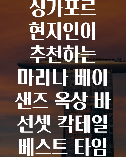 "์ฑ๊ฐํฌ๋ฅด์ ๊ฐ๋ฉด, ๊ผญ ๋ง๋ฆฌ๋ ๋ฒ ์ด ์์ฆ(Marina Bay Sands) ์ฅ์ ๋ฐSkyPark์์ ๋ฉ์ง ์ ์ ๊ณผ ์นตํ ์ผ ํ ์์ ์ฆ๊ธฐ๊ณ ์ถ๋ค!" ํ์ง๋ง ์ธ์ ๊ฐ๋ ๊ฒ ๊ฐ์ฅ ์ข์์ง, ์ด๋ค ์นตํ ์ผ์ ๋ง์๋ฉด ์ข์์ง ๋ง๋งํ์ ์ ์๋์?